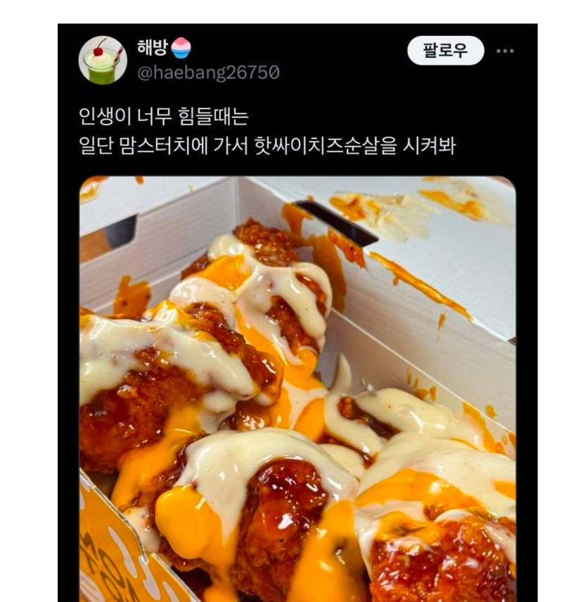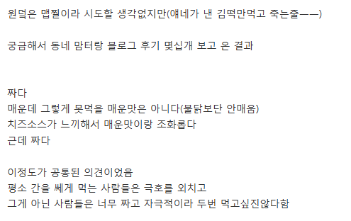 맘스터치가 사활걸고 출시했다는 메뉴.jpg coupang오늘의 특가는?이 포스팅은 쿠팡 파트너스 활동의 일환으로,이에 따른 일정액의 수수료를 제공받습니다.< 밀어보세요 Home page (Smart links) coupang오늘의 특가는?이 포스팅은 쿠팡 파트너스 활동의 일환으로,이에 따른 일정액의 수수료를 제공받습니다.< 밀어보세요 coupang오늘의 특가는?이 포스팅은 쿠팡 파트너스 활동의 일환으로,이에 따른 일정액의 수수료를 제공받습니다.< 밀어보세요 궁금해서 동네 맘터랑 블로그 후기 몇십개 보고 온 결과짜다매운데 그렇게 못먹을 매운맛은 아니다치즈소스가 느끼해서 매운맛이랑 조화롭다금데 짜다이정도가 공통된 의견 ㄷㄷ coupang오늘의 특가는?이 포스팅은 쿠팡 파트너스 활동의 일환으로,이에 따른 일정액의 수수료를 제공받습니다.< 밀어보세요
