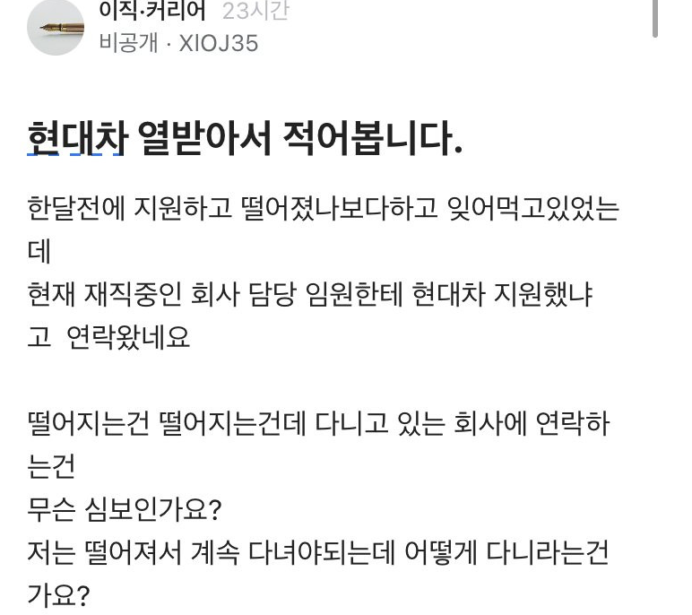 현대차 지원했다가 떨어졌는데 회사에 연락함 coupang오늘의 특가는?이 포스팅은 쿠팡 파트너스 활동의 일환으로,이에 따른 일정액의 수수료를 제공받습니다.< 밀어보세요 Home page (Smart links)??: 행님 ㅋㅋㅋ 행님 부서에 000이라고 있죠? ㅋㅋ 금마 단도리 좀 잘 해야겠는데요 ㅋㅋ