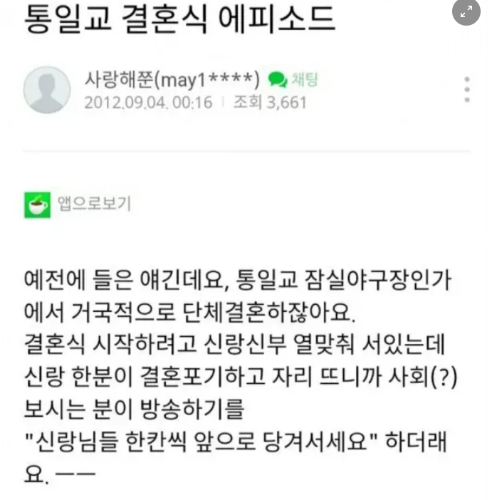 통일교 랜덤결혼식 썰 레전드 ㄷㄷ