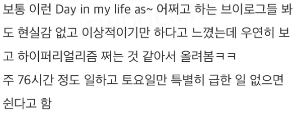주76시간 연봉 4억 누나의 브이로그 ㄷㄷ